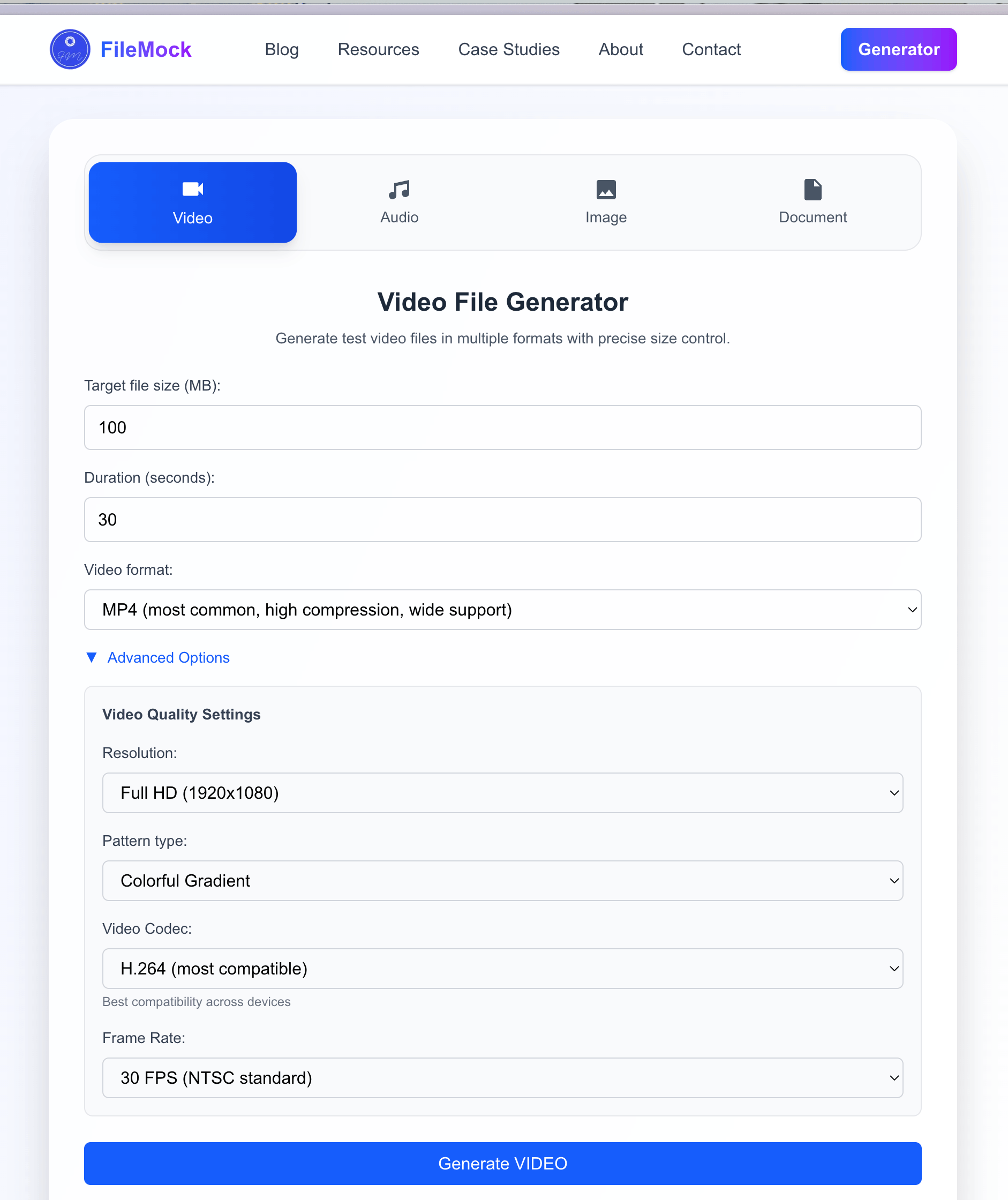 免费的测试文件生成器,支持视频/图片/音乐/文档等多种格式。