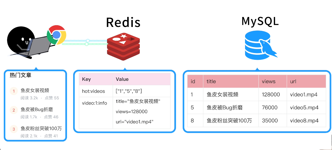 你想啊,视频网站用户一进来都要查看视频列表、热门推荐这些,如果用 Redis 把热点数据缓存起来,响应速度能快好几倍,还能帮数据库分摊查询压力。