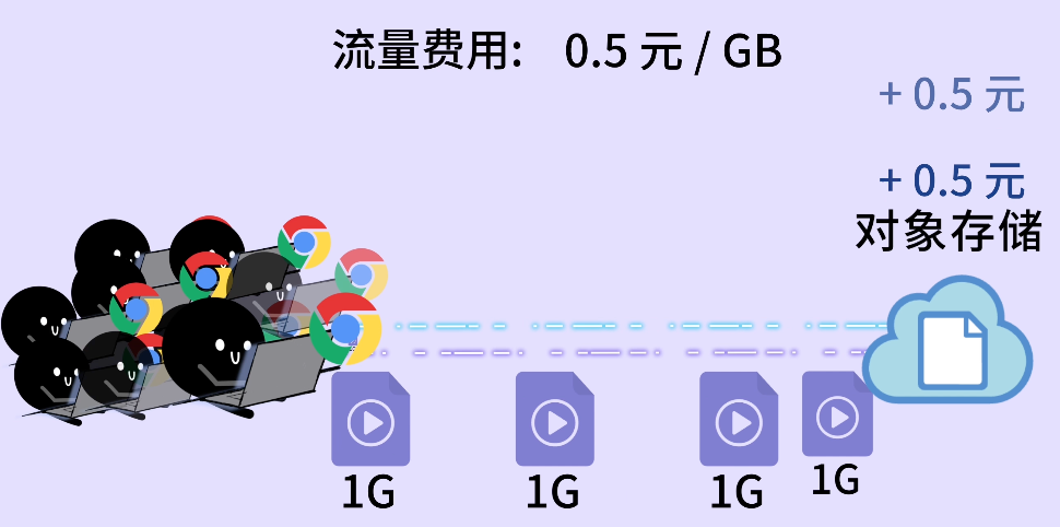 如果一个 1 GB 的视频被完整播放 1000 次,那就是 1000 GB 的流量,大概 500 块钱。
