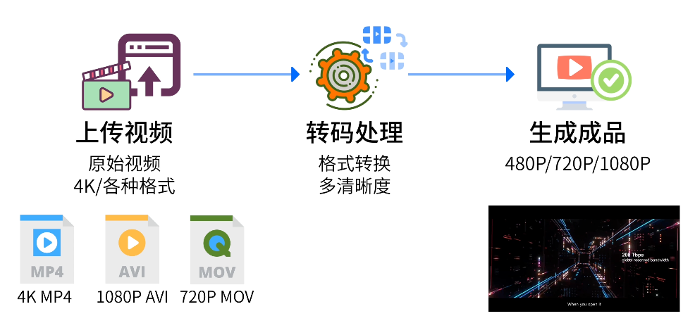 鱼皮接着说:这还不够!对于视频网站,你还要做 视频转码。因为用户上传的视频格式、分辨率、编码方式都不一样,你需要把它们统一转成适合网页播放的格式,还要生成不同清晰度的版本让用户选择(标清、高清、超清)。