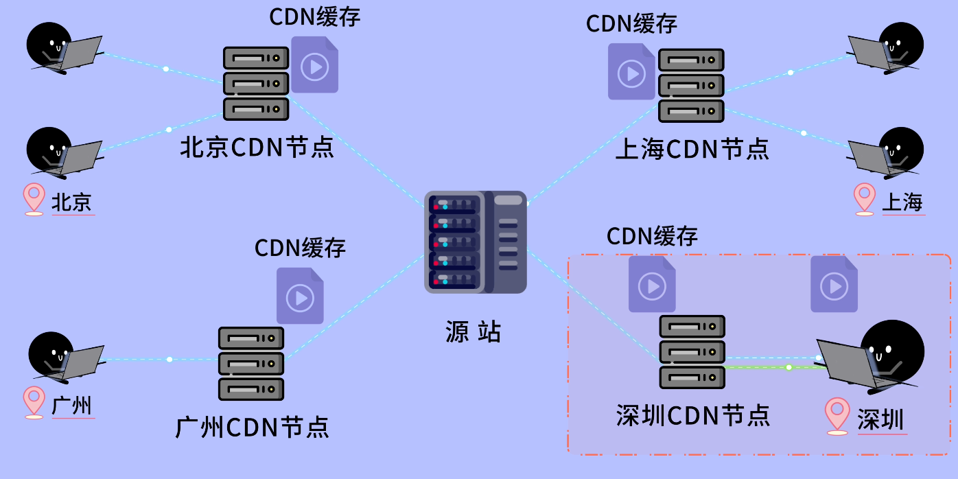 鱼皮:CDN 叫内容分发网络,简单说就是把你的视频缓存到全国各地的服务器节点上。用户看视频的时候,从最近的节点拿数据,不仅速度更快,而且流量费比对象存储便宜不少。