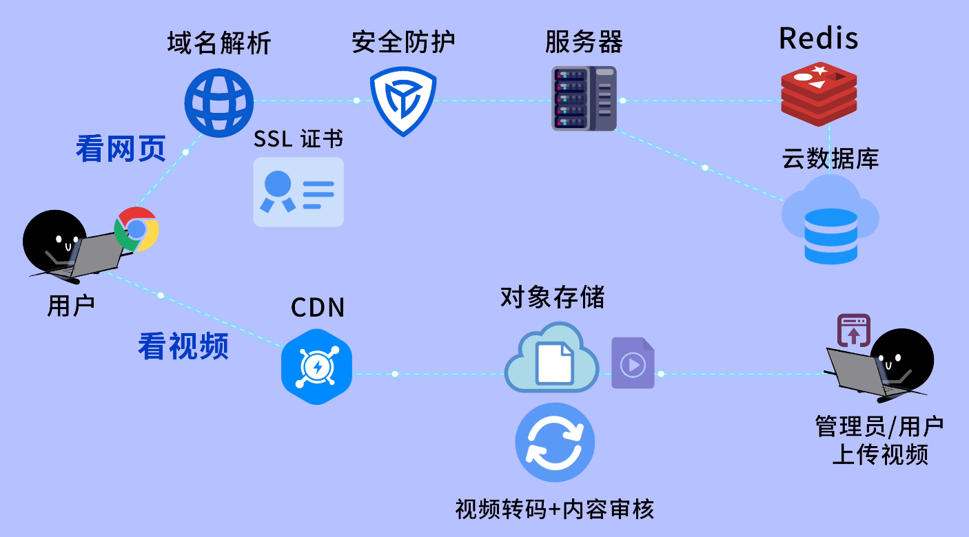 做视频网站要面对两大安全威胁。第一个是 内容安全,你总不能让用户随便上传违规视频吧?万一上传了不该传的内容,网站直接就被封了。
