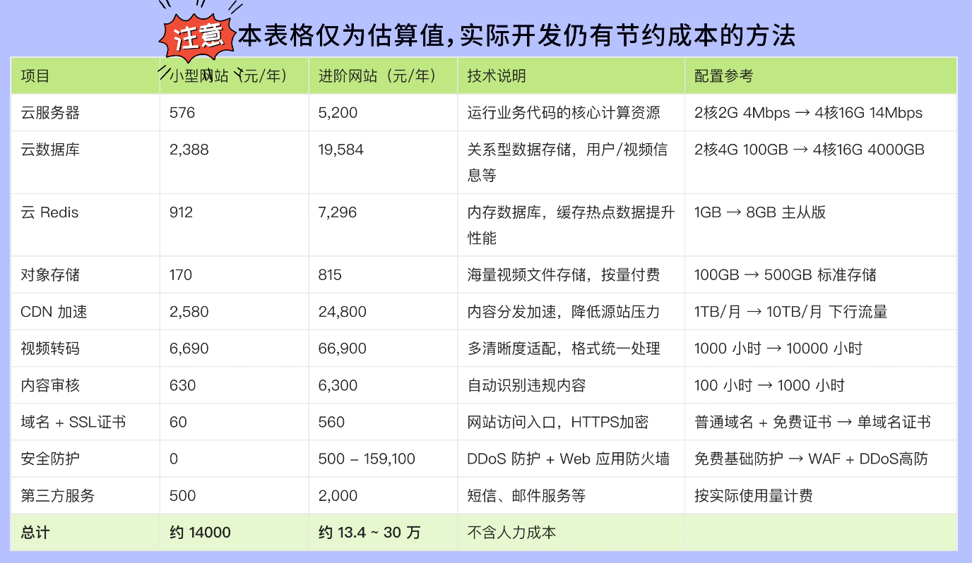 最后再总结一下,如果一个人做个小型的视频网站,一年到底要花多少钱?