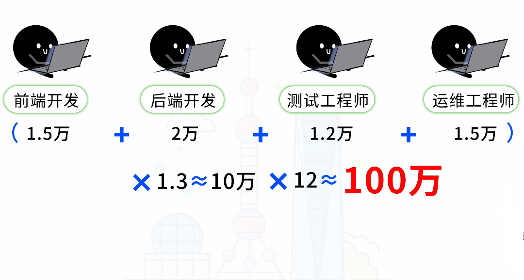 按照一线城市的成本算算,前端开发 + 后端开发 + 测试工程师 + 运维工程师,再加上五险一金,差不多每月要接近 10 万了。