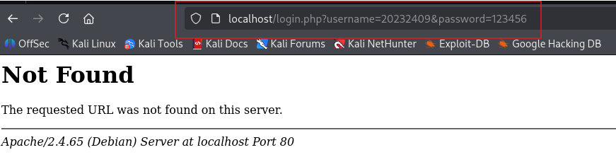进入虚拟机的/var/www/html目录,创建html文件。用vi命令创建两个分别使用POST和GET方法提交表单信息的html文件。使用POST方法数据会在请求体中发送,不会在URL中显示,更加安全;而使用GET方法数据会在URL中显示,因此可以看到明文的用户名口令。图4-9为核心代码、表单显示情况以及URL的显示。