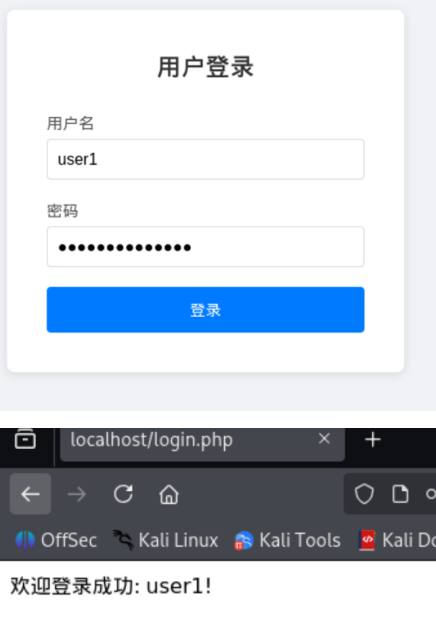 1.4Web后端数据库连接。能用PHP连接数据库,实现用户登录认证功能。