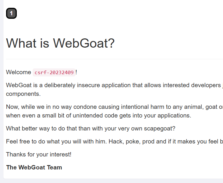 在主机上安装WebGoat靶场。安装完成后有WebGoat和WebWolf两个靶场可供选择。此处选择WebGoat靶场。安装过程可参考链接:https://blog.csdn.net/2302_82189125/article/details/135894689