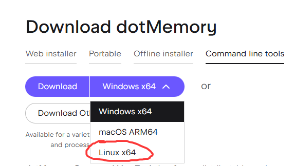 首先到 https://www.jetbrains.com/dotmemory/download/?section=commandline 上下载安装包,截图如下: