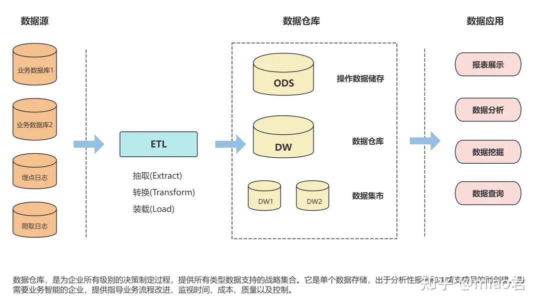 它的核心作用是:把清洗好的、来自不同业务系统,比如ERP、CRM、网站、APP等的数据,按照一个设计好的、统一的模型存储起来,主要用于支持企业的分析和决策。
