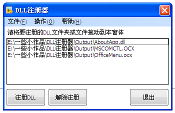 直接运行应用,拖放Dll和OCX文件到列表中,点击注册和反注册进行操作。