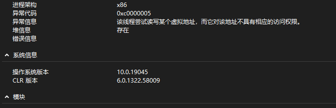 可见进程崩溃的原因是 “该线程尝试读写某个虚拟地址,而它对该地址不具有相应的访问权限” 导致的,如下图所示