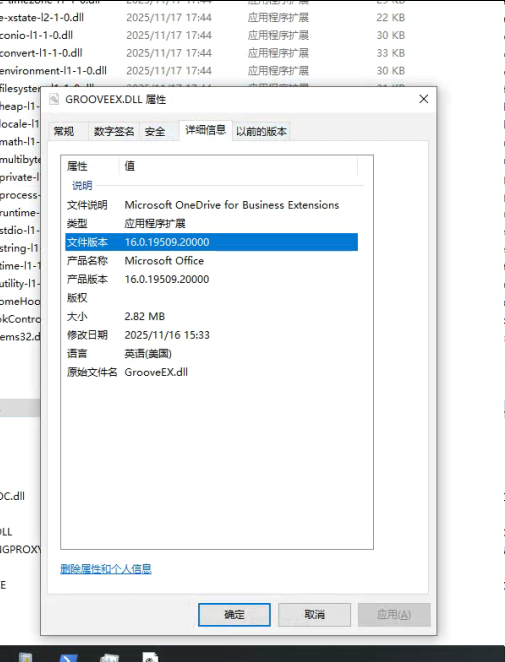 出现问题的 GROOVEEX.DLL 文件的版本是 16.0.19509.20000