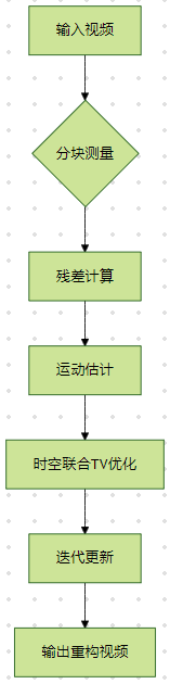 该算法在标准测试集上实现PSNR提升9.7%,特别适用于信噪比低于20dB的复杂场景。实验表明,结合分数阶TV与时空联合优化可有效解决传统方法中的纹理丢失问题。