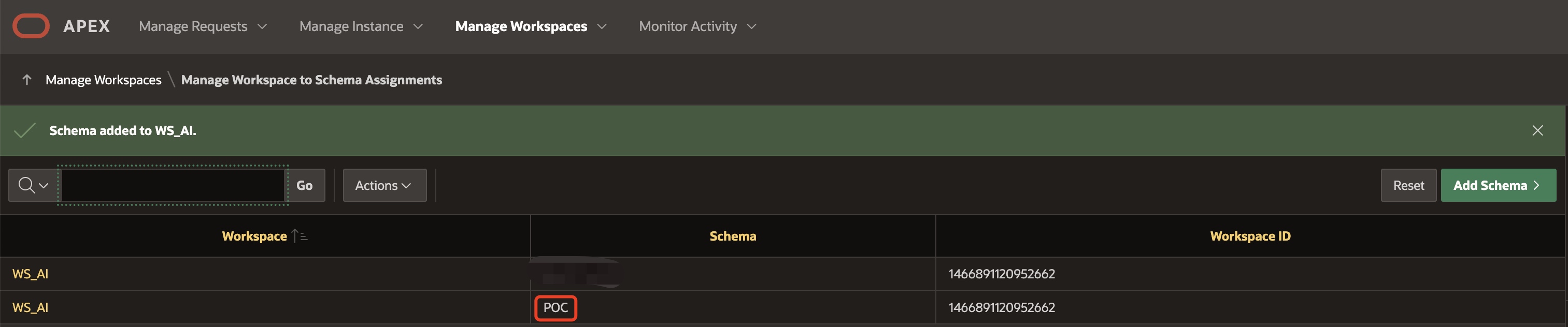 确认添加成功,可以看到 POC 这个schema已经纳入到 WS_AI 这个workspace下了: