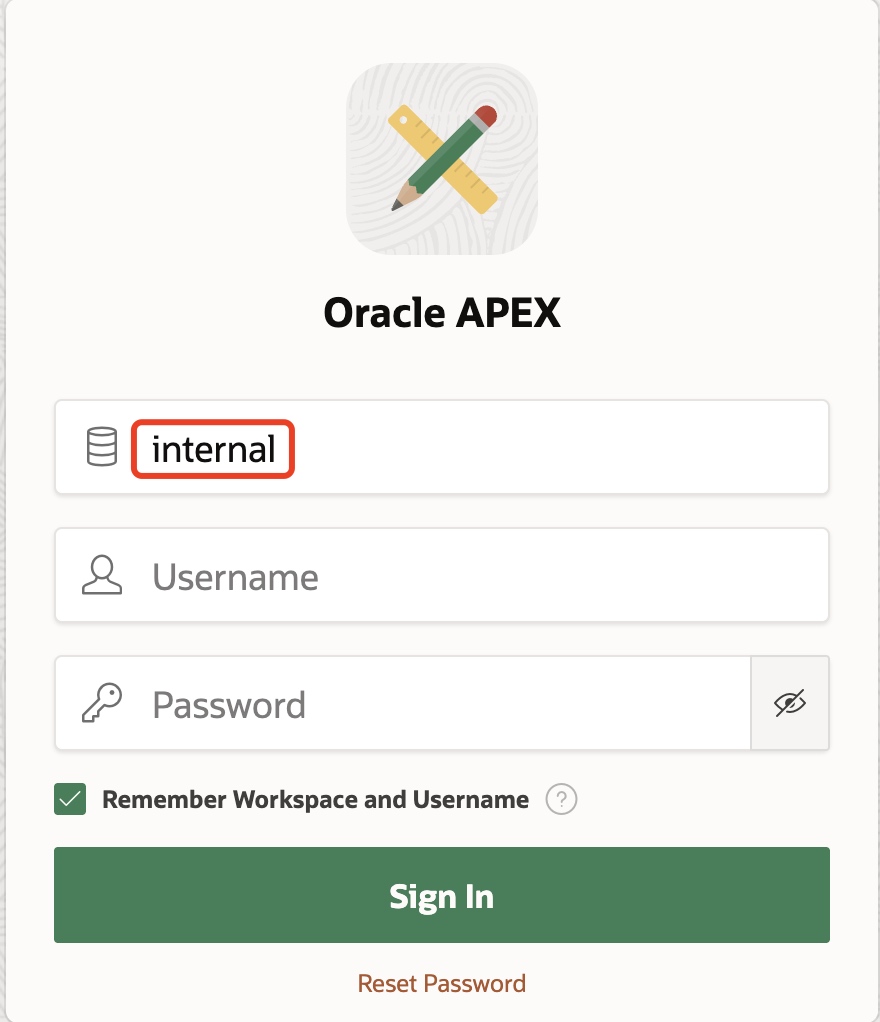 要访问这个业务 Schema,必须通过 管理员操作 来绑定,所以我们需要登录 internal 的workspace,输入对应的用户和密码登录。