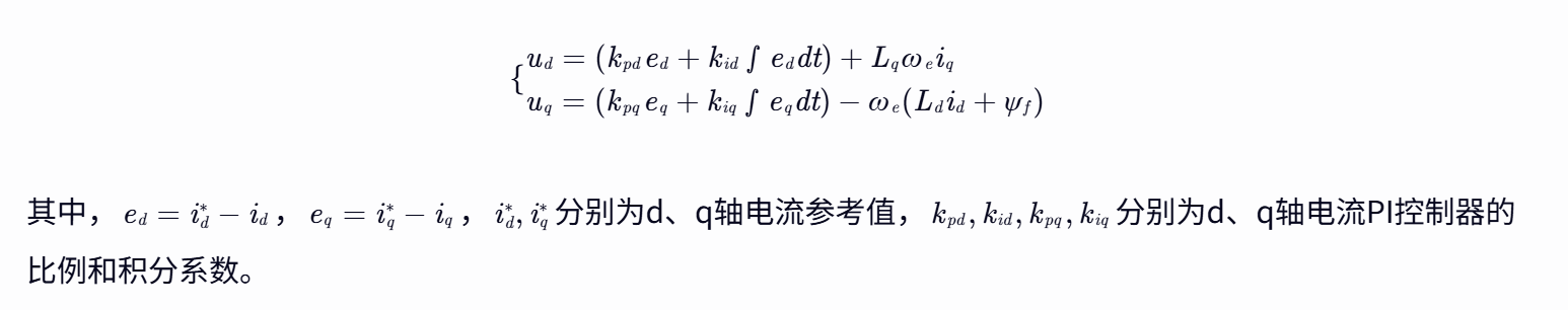电流环可采用PI或ADRC控制,建立d - q轴电流解耦。若采用PI控制,其控制律为: