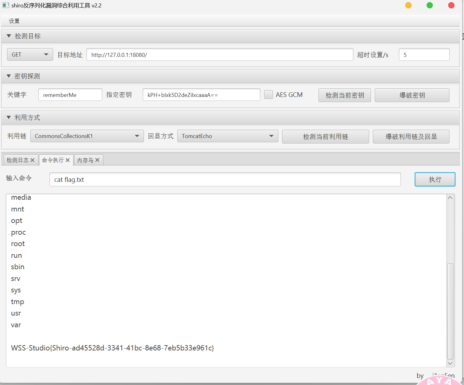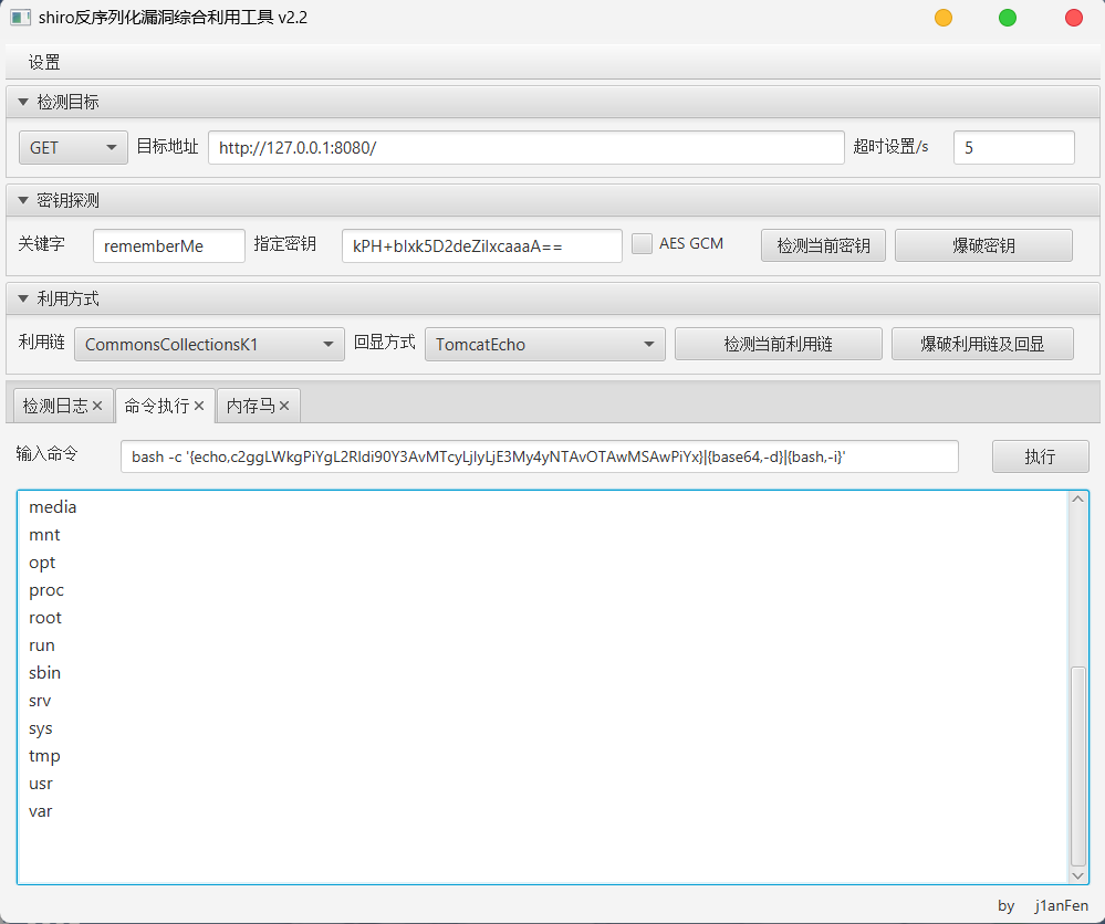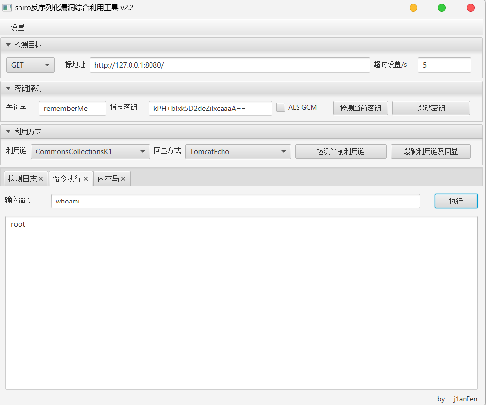 粘贴到shiro反序列化工具里面,点击执行(注意工具里面是没有回显的)