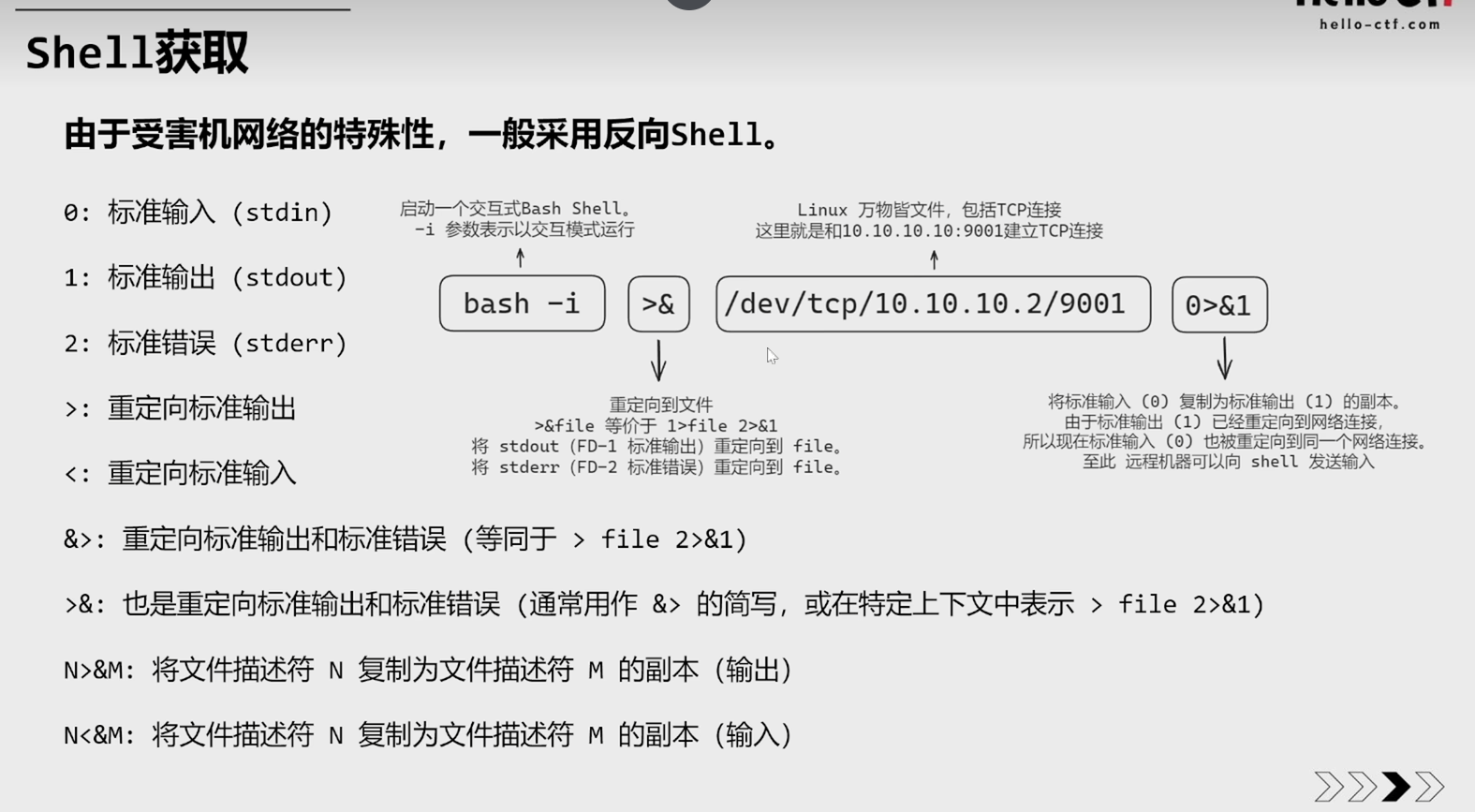 简单来说这个反弹shell的命令就是要将交互式shell弹到文件上,然后将标准输出1标准错误2标准输入0全部重定向