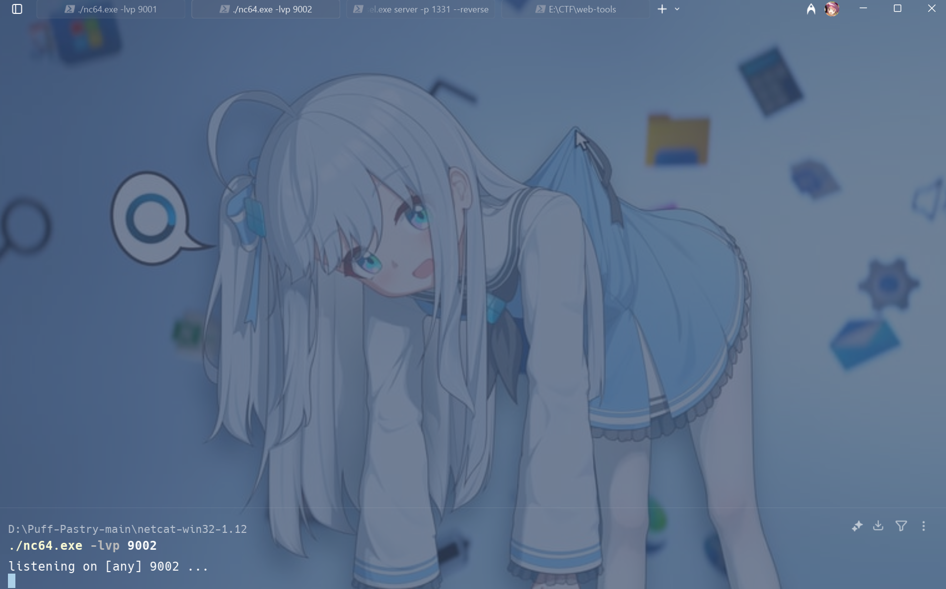 接下来就要拿第二个shell,打开一个新的终端,然后监听9002端口