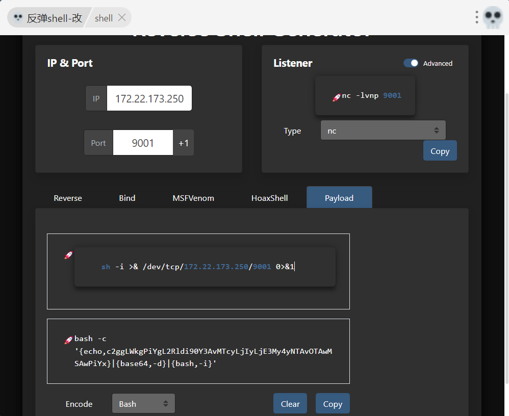 查询本地ip利用工具生成反弹shell命令(生成反弹shell命令工具名为utool)