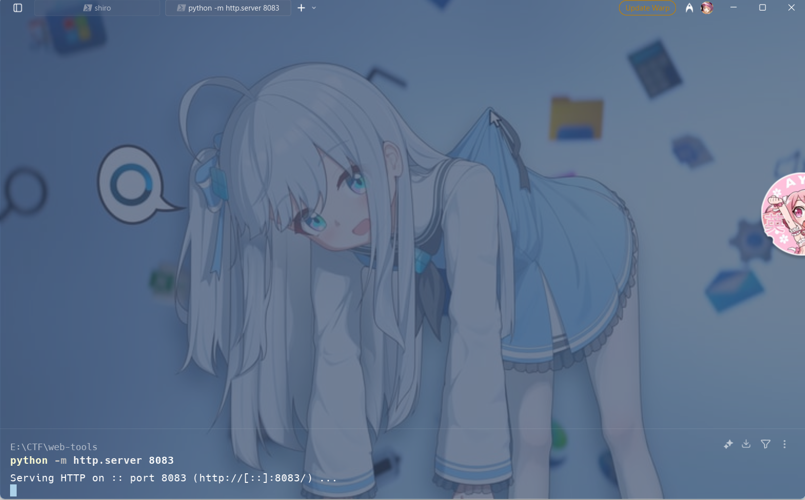 先开启Python的Http静态服务,因为探姬老师的靶机对于传进来的文件是没有进行任何的过滤的,这里我们开启Http服务后直接利用wget命令获取本地工具即可