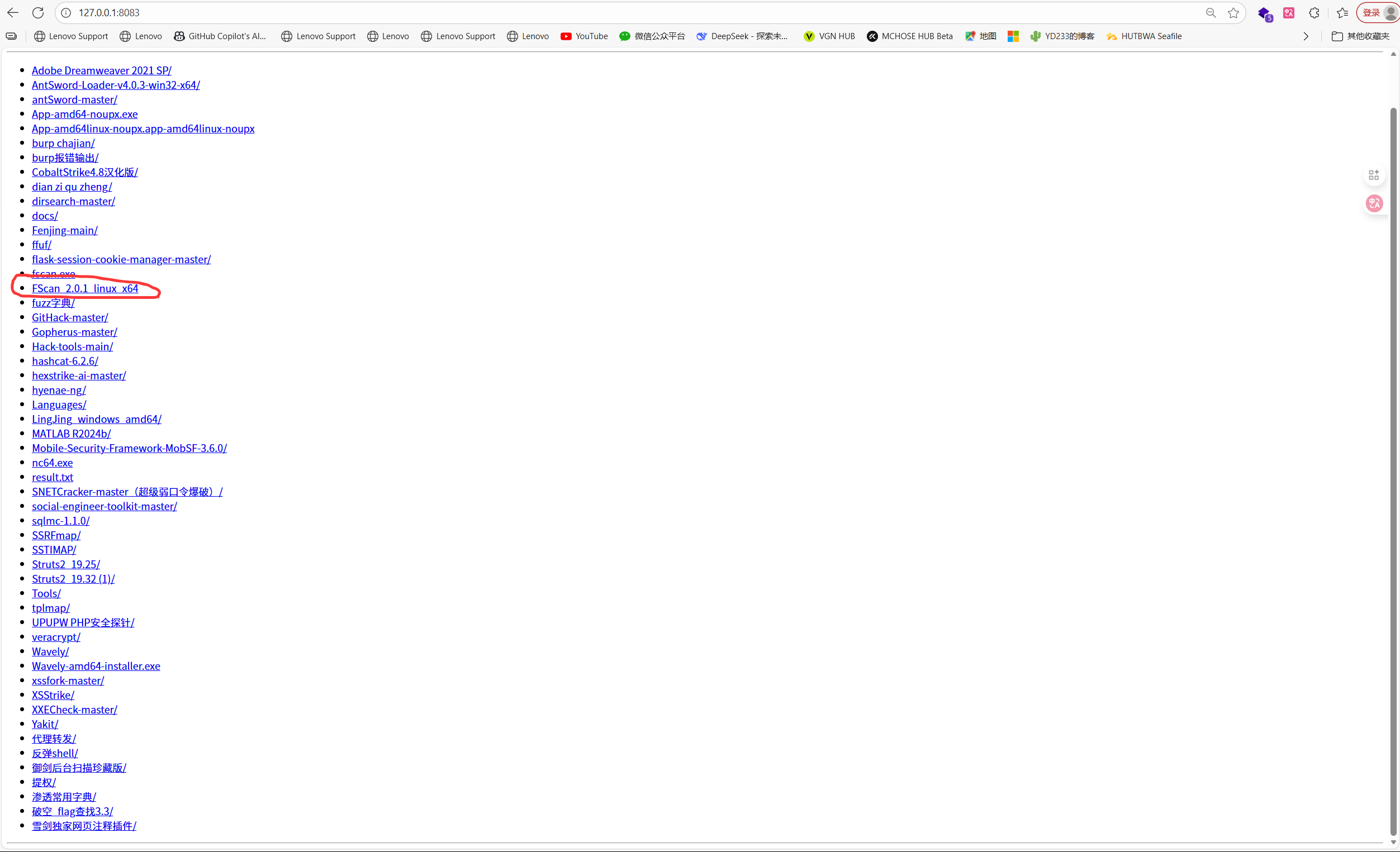 在浏览器访问一下开启的http服务找到要上传的工具fscan(记得在本地下载linux版本的fscan)