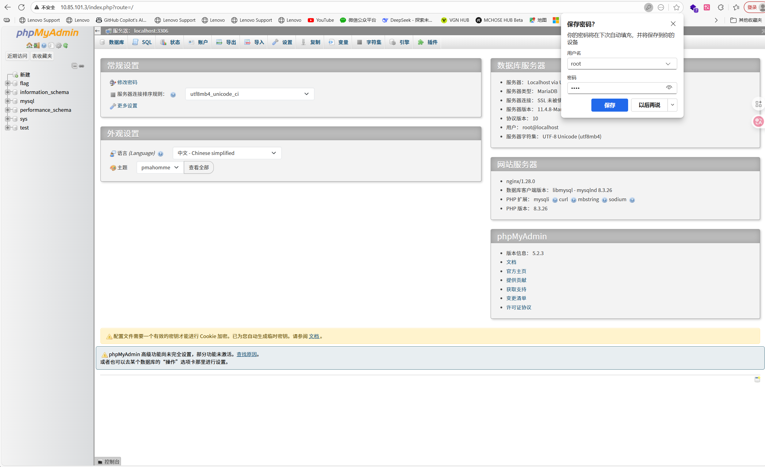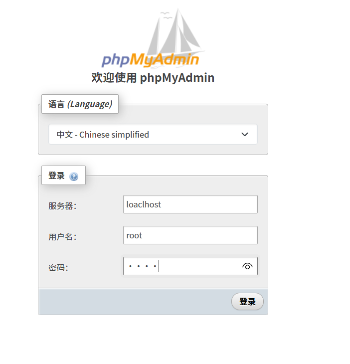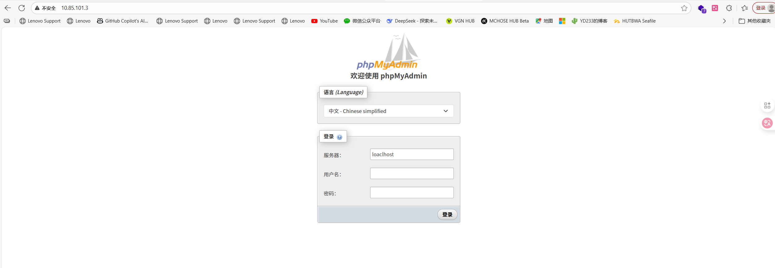 接下来尝试访问10.85.101.3:80,发现访问成功,phpmyadmin的登陆框就先测试弱口令root root
