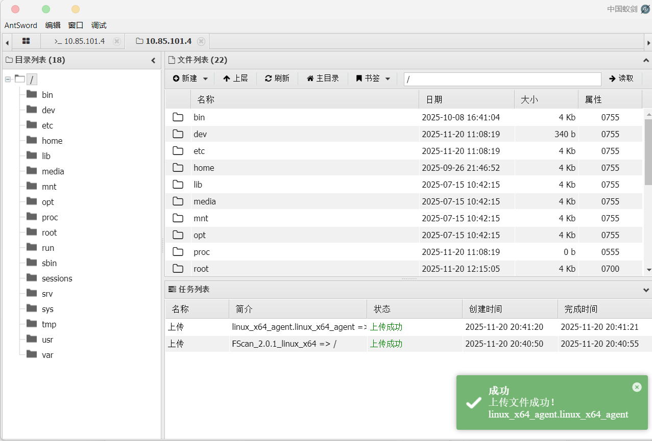 接下来就是文件落地了,依旧传fscan和stowaway_agent