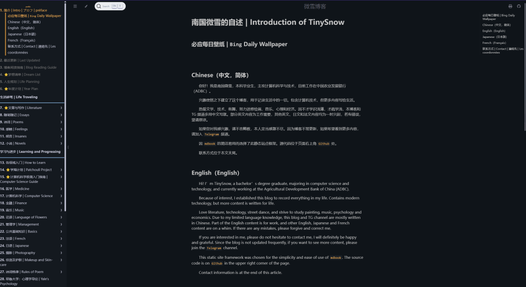 mdbook 升级到 0.5 了,官方自己说 break changes,直接把博客干废了。调试了一晚上,调到吐血。终于调好了。现在我们 mdbook 终于也有自己的 toc 了,越来越能用了!鼓掌!虽然听起来不像什么好话就是了,笑死。这个 toc 好像手机也能看,算是一大优点吧。