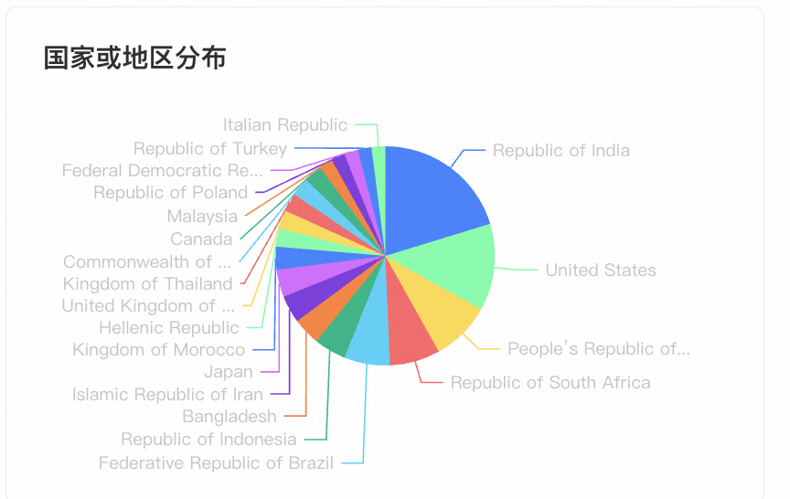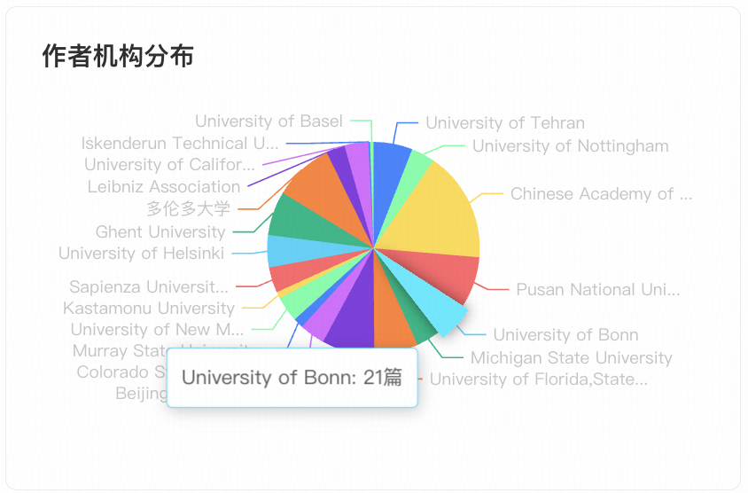 从国家或地区分布来看, 中国、美国、印度是该刊的核心发文力量 ,同时德国、英国、伊朗等多个国家也积极参与其中,体现出生态信息学研究的国际化协作格局;在作者机构方面, 北京师范大学、意大利相关研究机构、美国加州大学 等国内外高校与科研院所形成了深度研究网络,呈现出 “全球生态信息学特色机构 + 综合科研强校” 的合作态势。