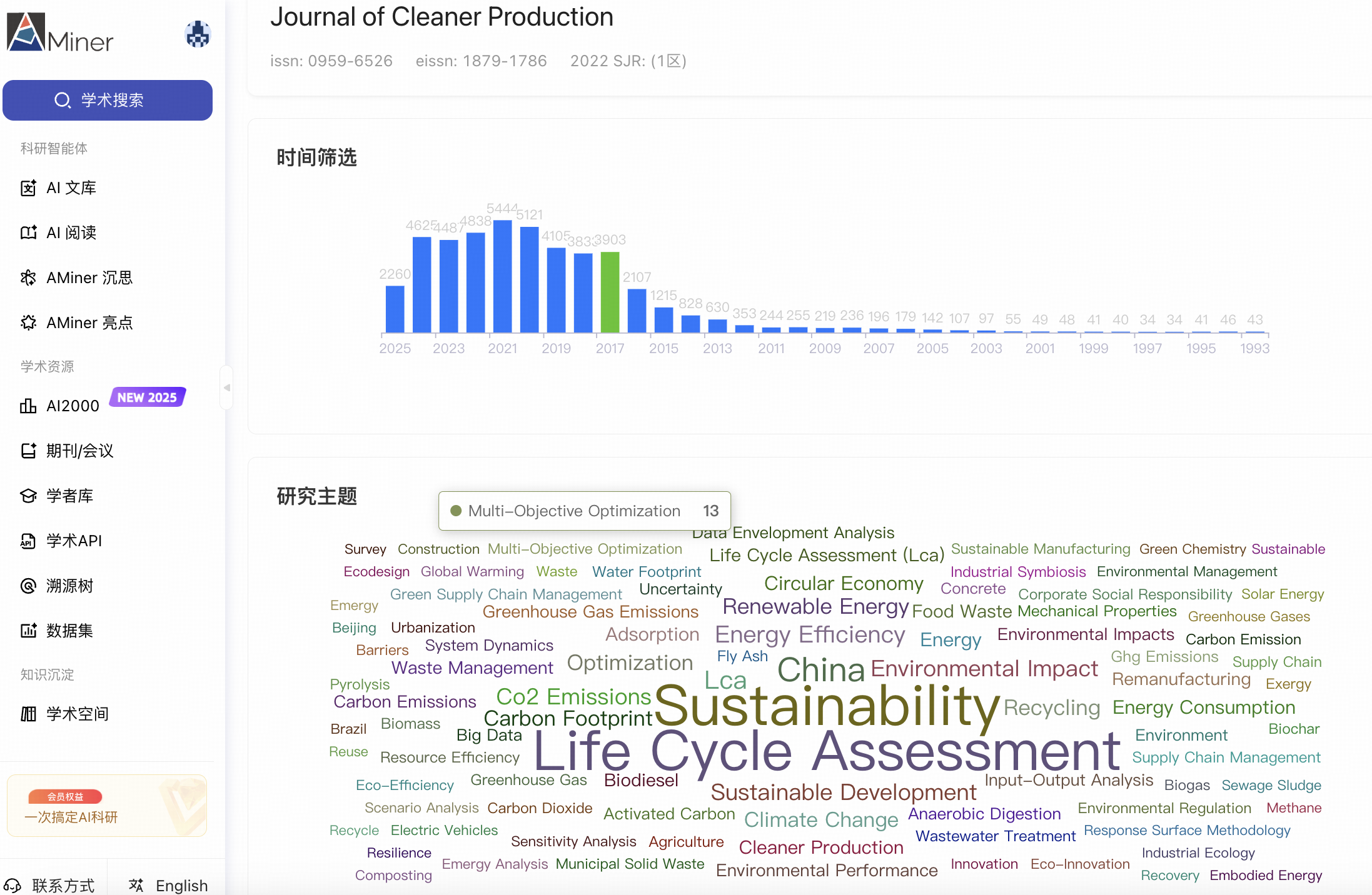 Jiří Jaromír Klemeš 是《Journal of Cleaner Production》的核心高产作者之一, 论文数达 137 篇,引用数 8281。他专注于可持续过程系统工程与清洁生产技术研究, 长期致力于将系统工程方法与清洁生产理念深度融合。其发表的《Direct Measurement of Methane Emissions from the Upstream Oil and Gas Sector: Review of Measurement Results and Technology Advances (2018–2022)》的系列论文( 可通过 AMiner 检索: https://www.aminer.cn/pub/64a8ba4ad68f896efa009b7f/?f=fwh_am_v1 )通过系统整合 2018-2022 年的技术进展与实测数据,解决了油气上游行业甲烷排放测量的关键问题,为减排实践、政策制定和全球气候治理提供了实打实的支撑。