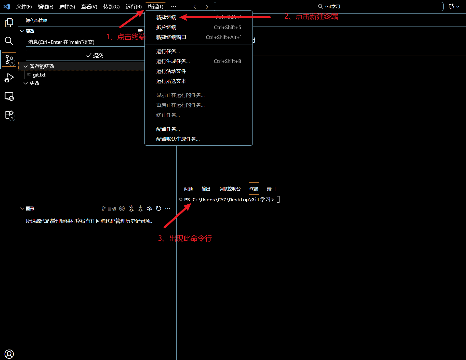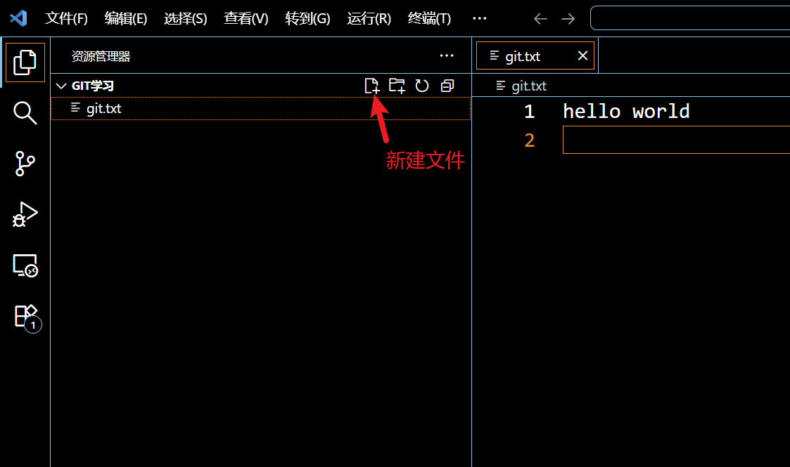 三、新建一个文件夹(尽量使用英文名,我这里带了中文!)并使用VSCode打开,在文件夹下面新建一个文件,随便写点东西并保存