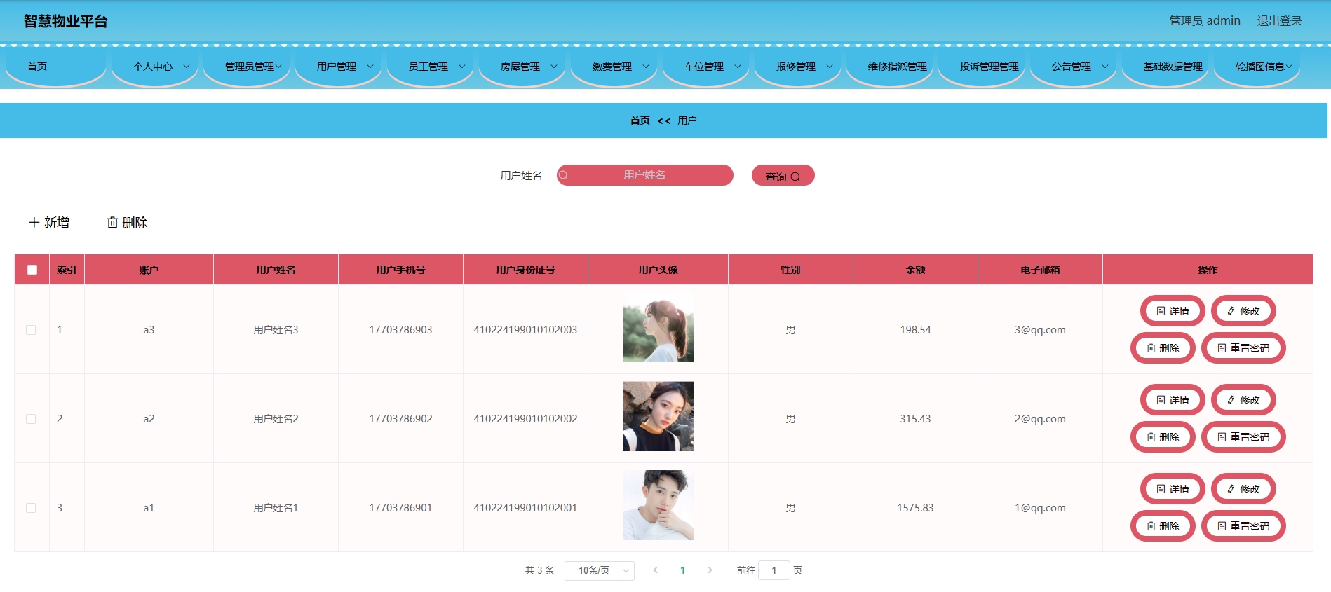 依靠微信小程序形成起来的小区物业管理系统,它的功能结构按照操作主体来分,可以划成两大类,即管理员端和用户端,这二者能够各自满足不一样的角色对于管理工作以及平常生活方面的需求。在这个系统当中,管理员功能模块包含车位经营,报修流程监督,维修任务分发,客服投诉解决,公告发行及管理,房屋状况监测,费用交付经营,用户权限调控以及员工表现评价等诸多重要部分,该系统把MySQL当作主要的数据存储库,利用Java语言执行业务逻辑,而且融合SpringBoot框架来改善应用程序的开启速度并便于后续的维持工作,进而保障了整个系统能够高效而又稳定地运作并且具有一定的灵活性。 依托微信小程序来做的小区物业管理系统,明显改善了小区物业信息经营方面存在的问题,它通过改良物业信息处理流程,保障了小区物业信息数据的安全,这个系统既十分可靠,又有着很好的安全保护机制,成了现代小区物业管理不可缺少的一种高效解决办法。