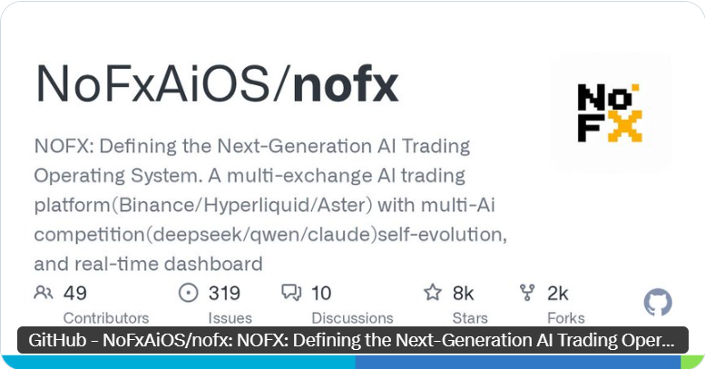 - NoF1量化框架:https://github.com/NoFxAiOS/nofx