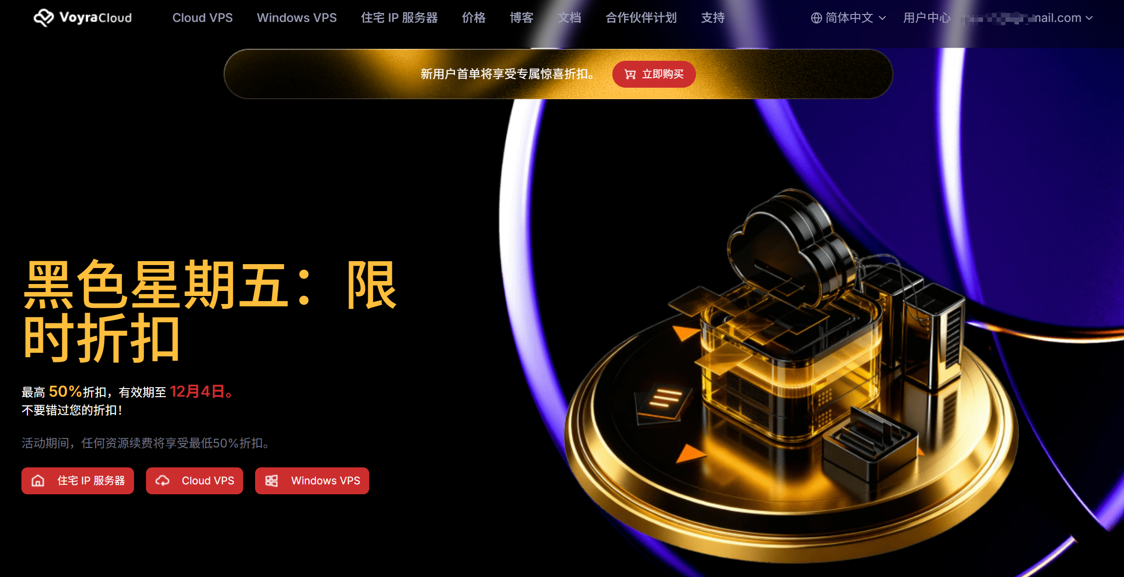 选择合适的VPS是所有姿势的基础。作者推荐使用住宅IP VPS(如VoyraCloud的黑五五折套餐