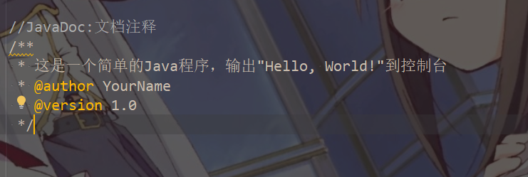 文档注释 /** / 文档注释里面每一行的最前面都有一个,这个*符号可以加参数,@后面加的参数是有作用的,可以标示出一些内容,这些注释结合JavaDoc来使用