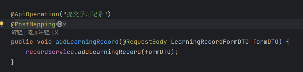 void addLearningRecord(LearningRecordFormDTO formDTO);
