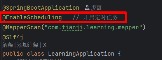 public class LessonStatusCheckTask {private final ILearningLessonService lessonService;/*** 检查课表中的课程状态*/@Scheduled(cron = "0 * * * * ?") //秒 分 时 日 月 周 (年) 每分钟执行一次public void checkLessonStatus() {//1.日志输出,方便观察LocalDateTime now = LocalDateTime.now();log.info("定时检查课表中的课程是否过期:{}", now);//2.查询课表中所有状态为未过期的课程(不需要区分用户)List notExpiredCourses = lessonService.list(Wrappers.lambdaQuery().ne(LearningLesson::getStatus, LessonStatus.EXPIRED)); //ne表示不等于(not equal)//3.遍历所有未过期的课程,判断是否过期(当前时间在过期时间之后)for (LearningLesson notExpiredCourse : notExpiredCourses) {if (now.isAfter(notExpiredCourse.getExpireTime())) {notExpiredCourse.setStatus(LessonStatus.EXPIRED);}}//4.批量更新课程状态lessonService.updateBatchById(notExpiredCourses);}