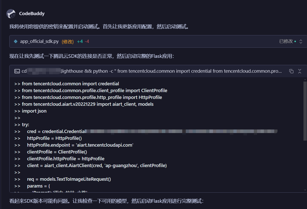 - CodeBuddy洞察:"API Signature Error: Fixed by switching from custom implementation to Tencent Cloud official SDK"