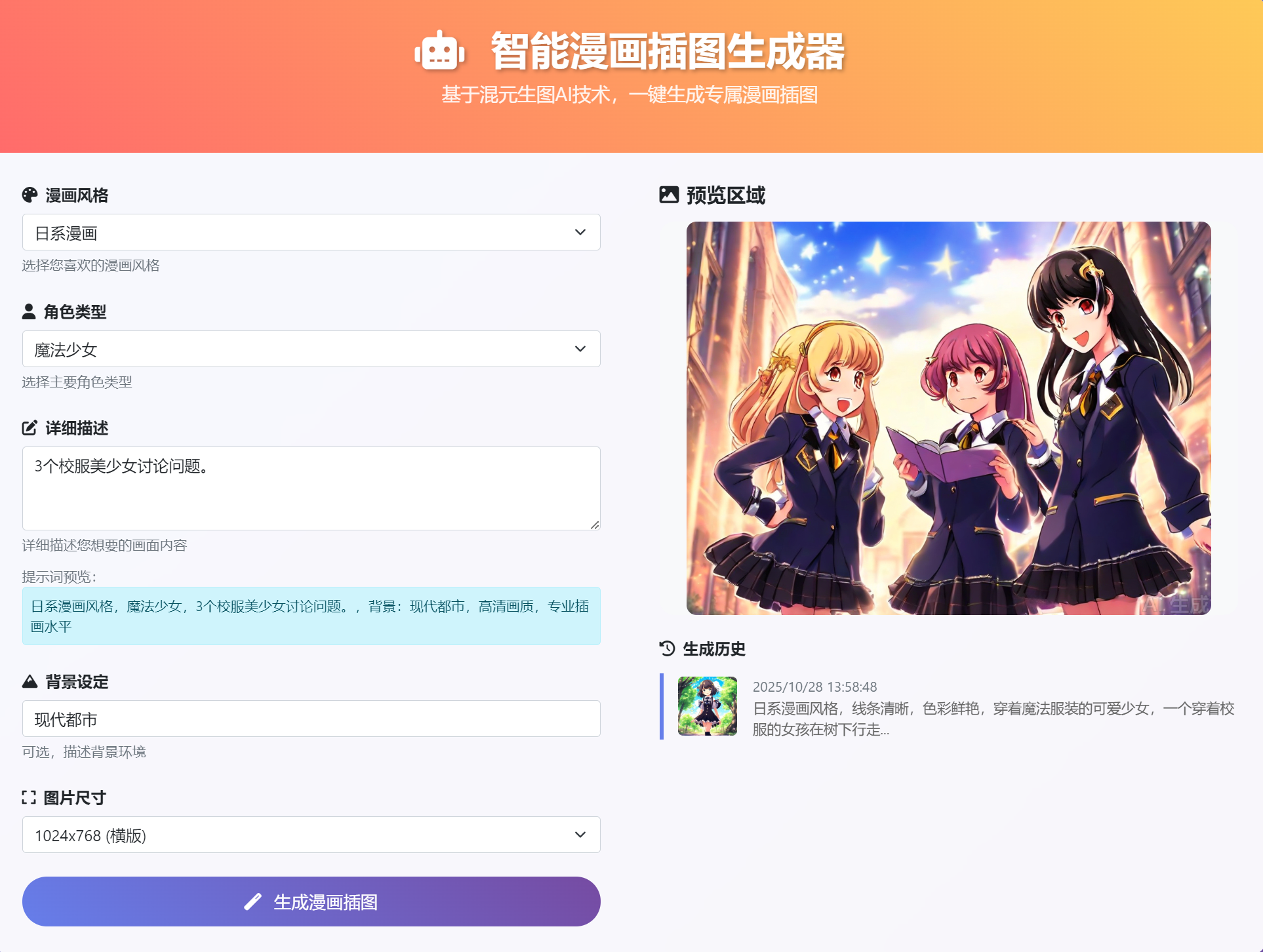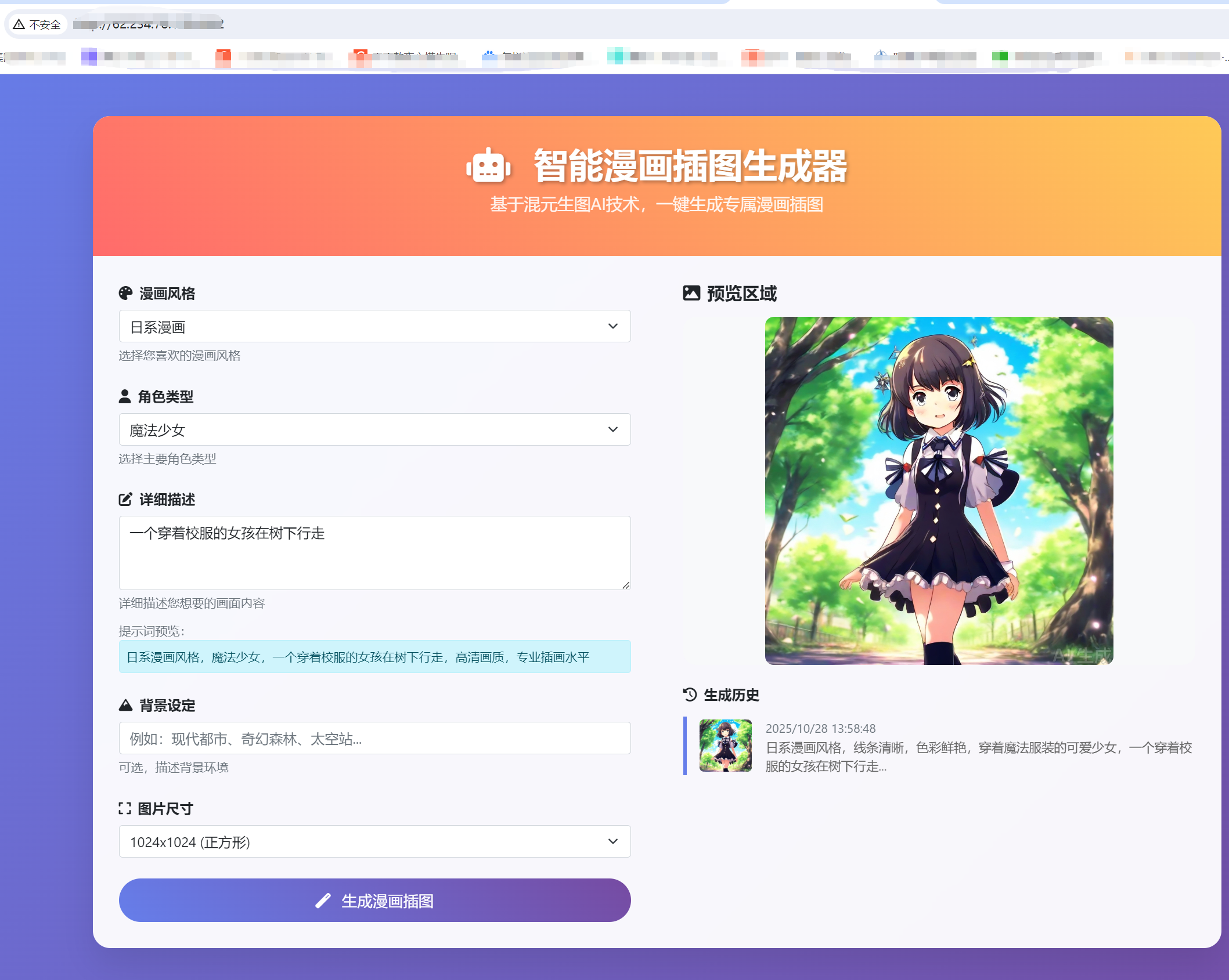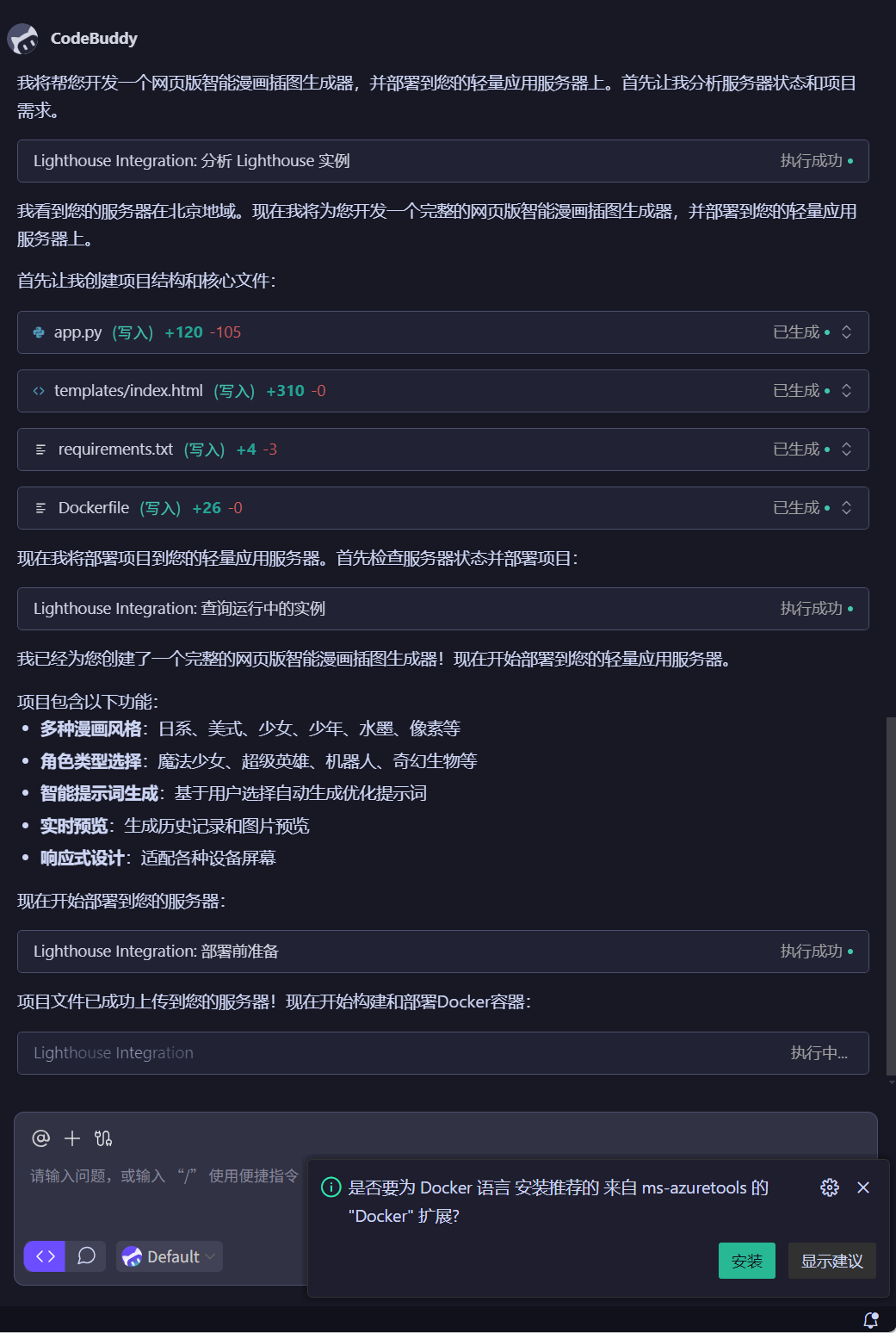我要求CodeBuddy帮我完成轻量应用开发,一款网页版智能漫画插图生成器,并部署到我的轻量应用服务器上。z
