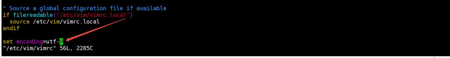 4、修改 vim 配置文件,让配置持久生效,否则下次打开还是乱码
