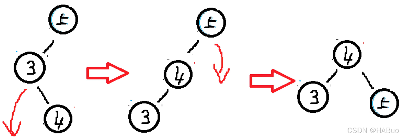 此时节点3的平衡因子为2,用左旋,但可以看到,旋转之后仍然不是AVL树,那么该怎么办呢?