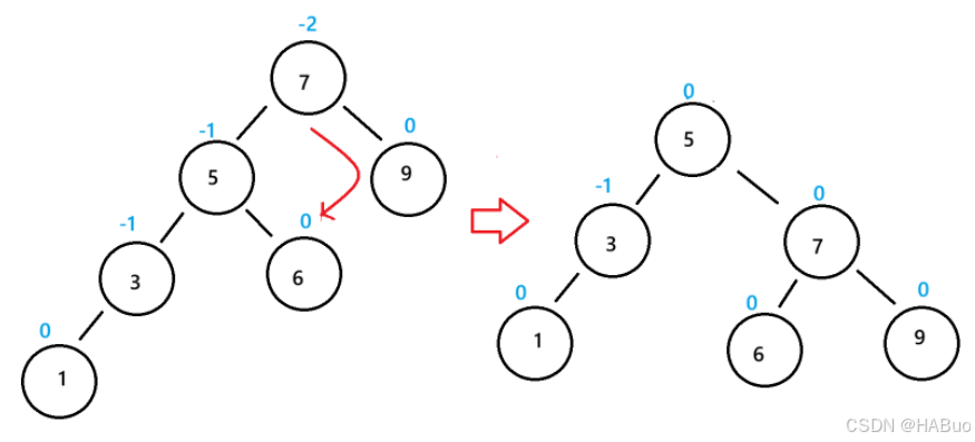 ④如果为2、-2那么表示该节点失衡,需要进行旋转。