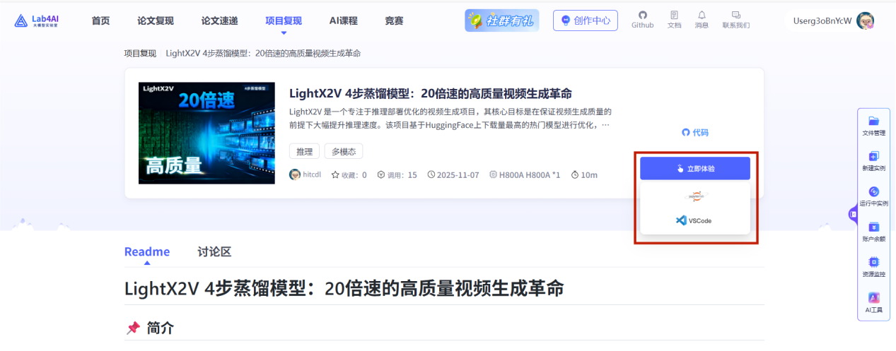 更重要的是,在 LightX2V 背后,Lab4AI 不只是提供“一键复现”的实验环境,Lab4AI 不只是提供“一键复现”的实验环境,还在做一件更重要的事:把这些前沿能力打包成真正「可用、可学、可复用」的技术资产。
