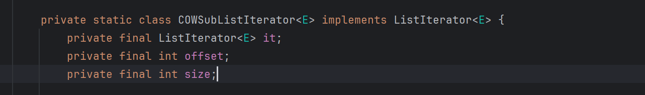 COWSubListIterator是COWSubList对应的迭代器,基于子列表的范围和偏移量实现迭代逻辑。