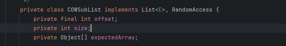 COWSubList用来支持子列表操作,内部封装了对原列表的部分视图。