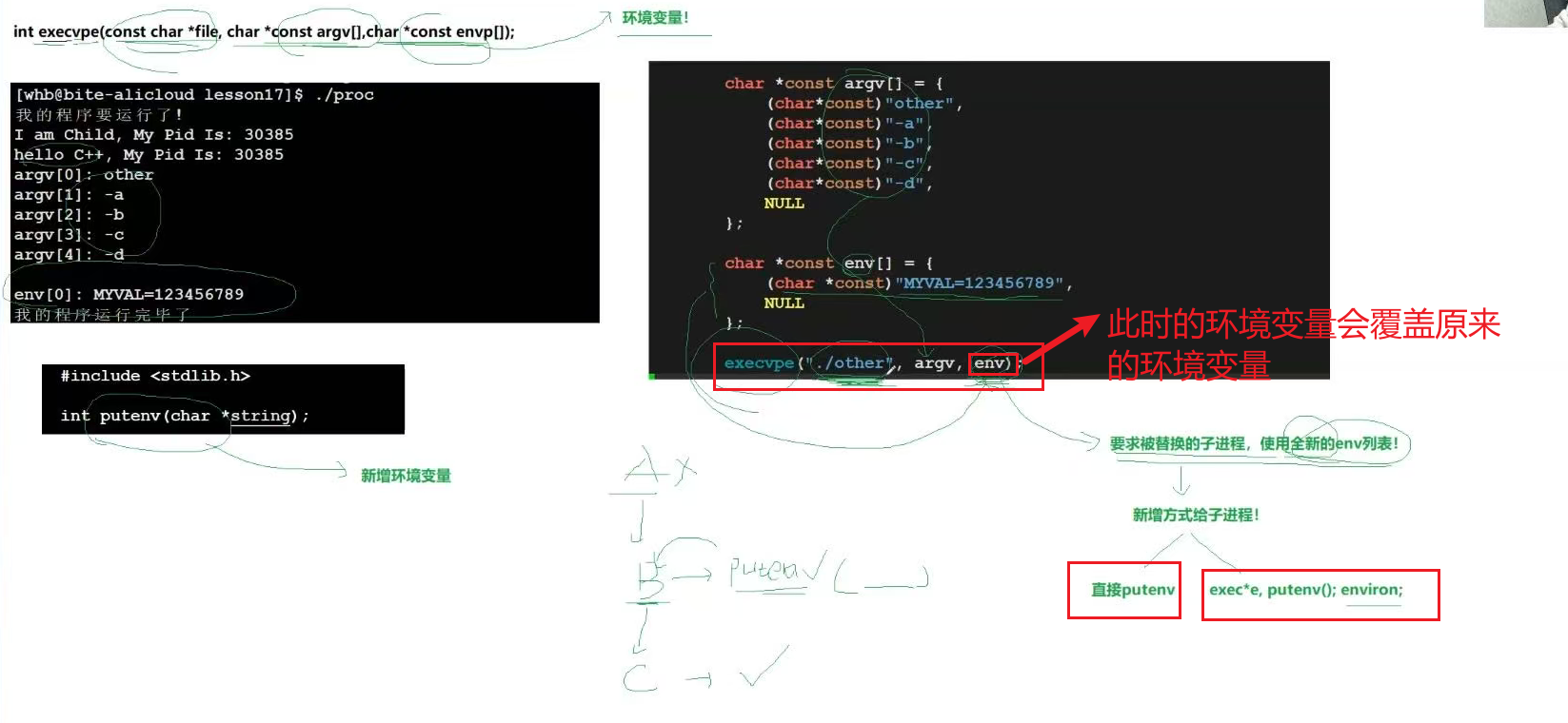 fork()之后,⽗⼦各⾃执⾏⽗进程代码的⼀部分如果⼦进程就想执⾏⼀个全新的程序呢?进程的程序
