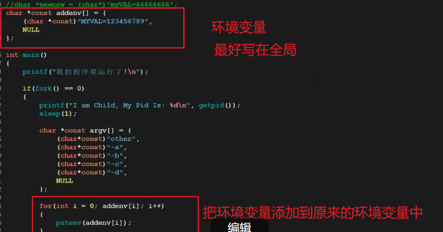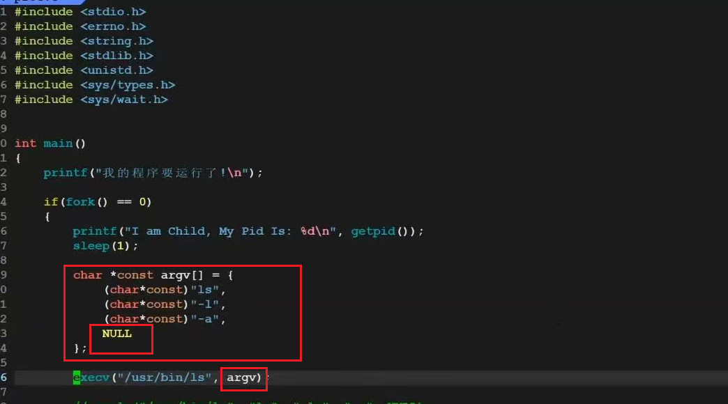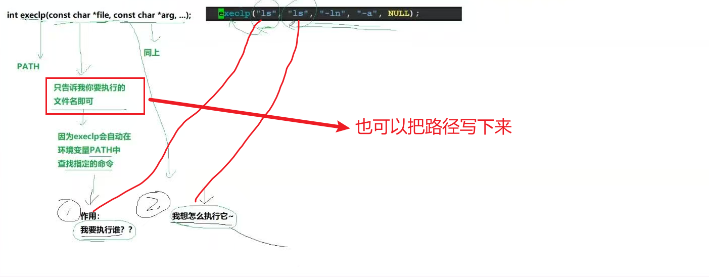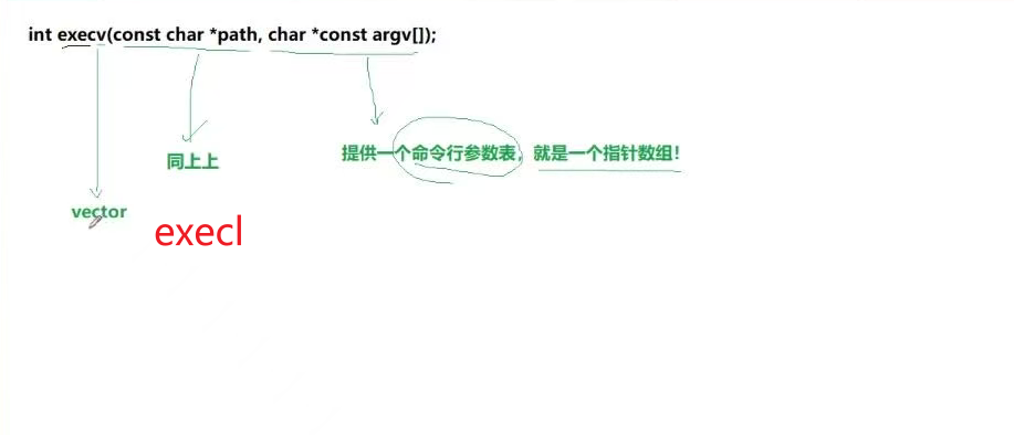 • ⼀个进程要执⾏⼀个不同的程序。例如⼦进程从fork返回后,调⽤exec函数。