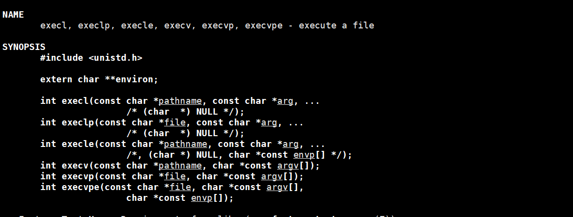 只有 execve是真正的环境调⽤,其它五个函数最终都调⽤execve